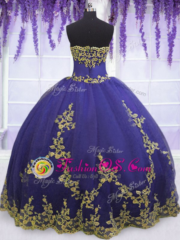 Embroidery and Ruffles Ball Gown Prom Dress Purple Lace Up Sleeveless Floor Length