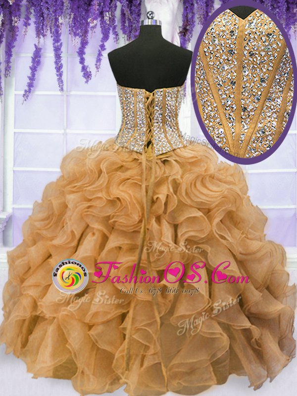 High Class Gold Sleeveless Organza Lace Up Quinceanera Dresses for Military Ball and Sweet 16 and Quinceanera