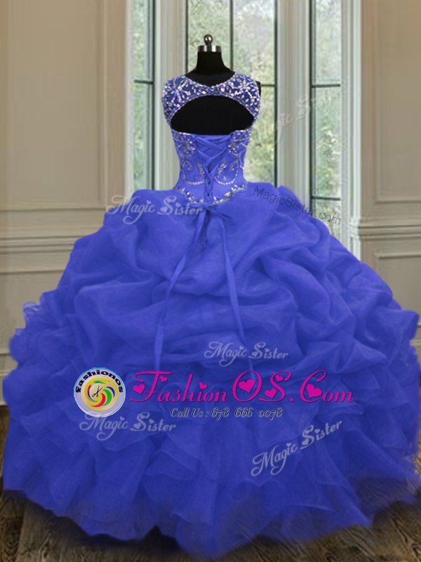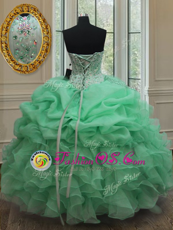 Dazzling Sleeveless Lace Up Floor Length Beading and Ruffles and Sequins Sweet 16 Quinceanera Dress