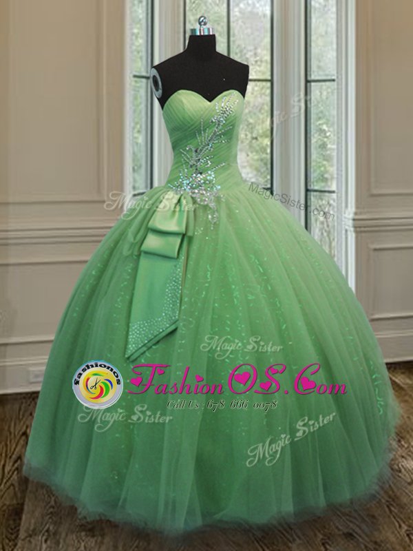 Yellow Green Ball Gowns Sweetheart Sleeveless Tulle Floor Length Lace Up Beading and Ruching and Bowknot Quinceanera Dress