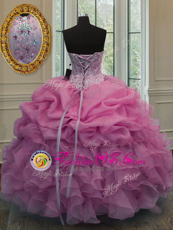Lavender Lace Up Sweetheart Beading and Ruffles Quinceanera Gown Organza Sleeveless