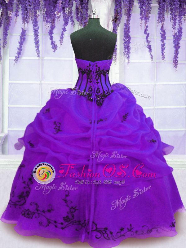 Dramatic Purple Sleeveless Organza Lace Up Vestidos de Quinceanera for Military Ball and Sweet 16 and Quinceanera