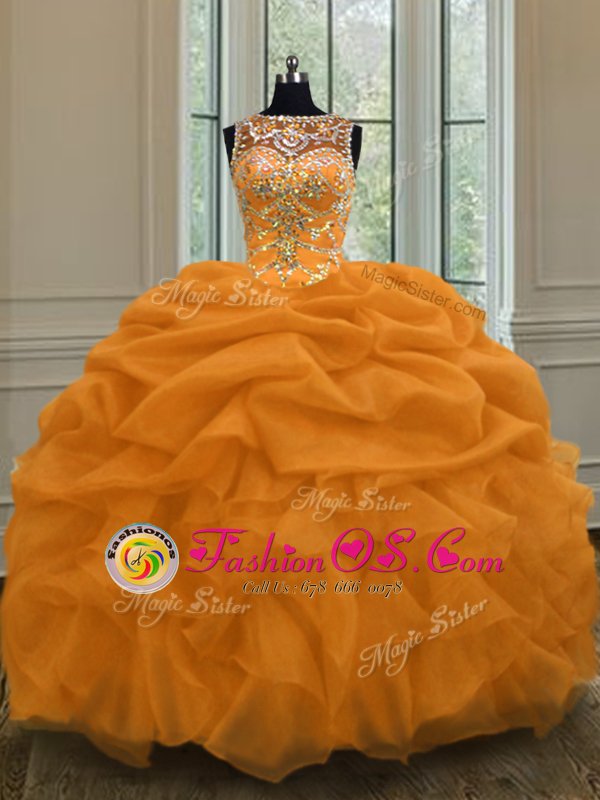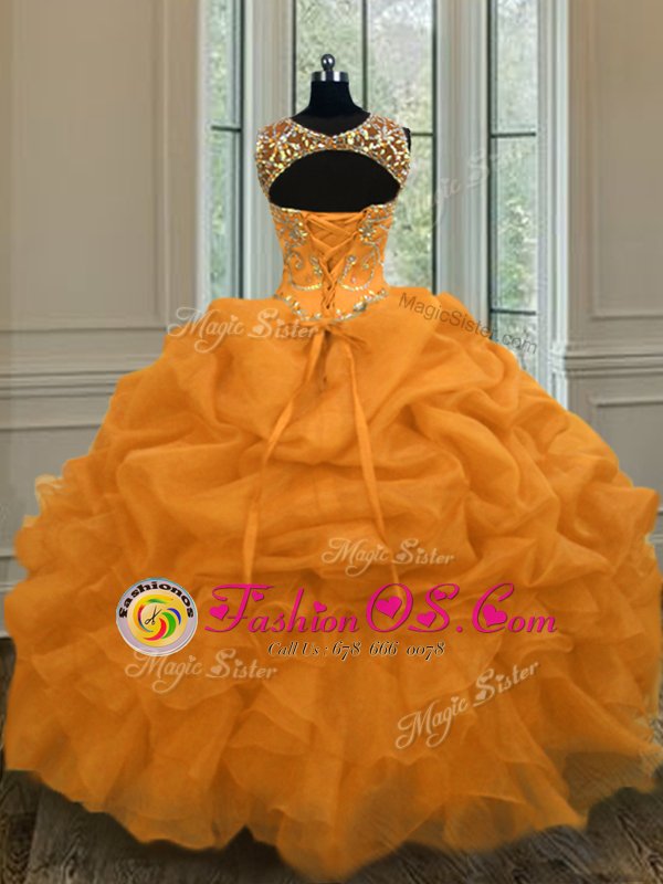 Excellent Scoop Beading and Pick Ups Sweet 16 Dress Gold Lace Up Sleeveless Floor Length