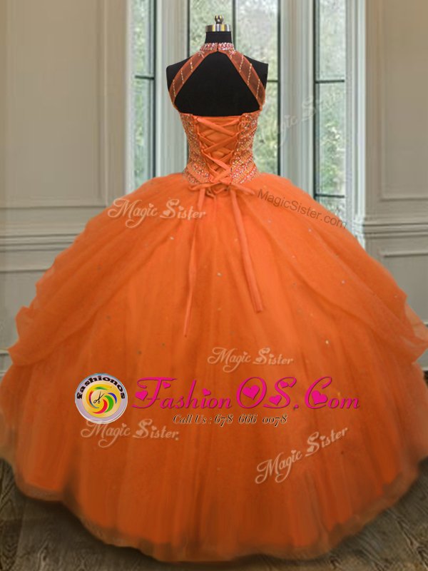 Customized Baby Blue Lace Up Sweetheart Beading Ball Gown Prom Dress Tulle Sleeveless