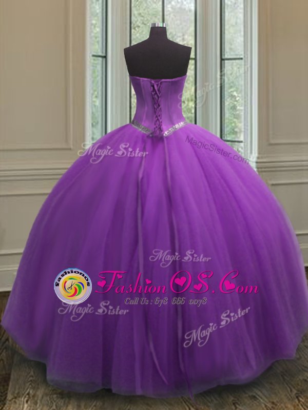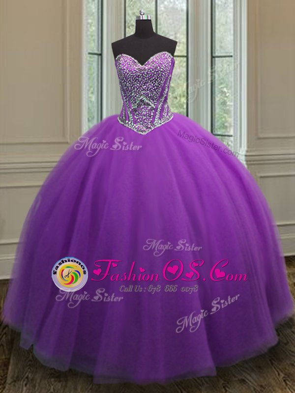 Scoop Gold Ball Gowns Beading and Appliques Vestidos de Quinceanera Backless Tulle Sleeveless Floor Length