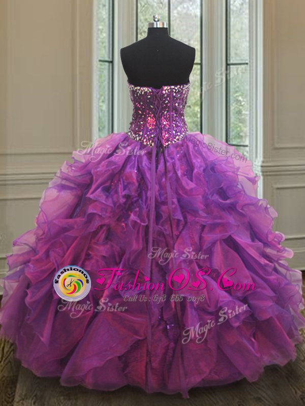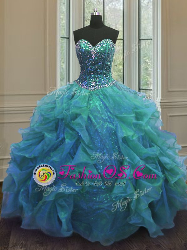 Blue Sleeveless Beading and Ruffles Floor Length Quinceanera Dress