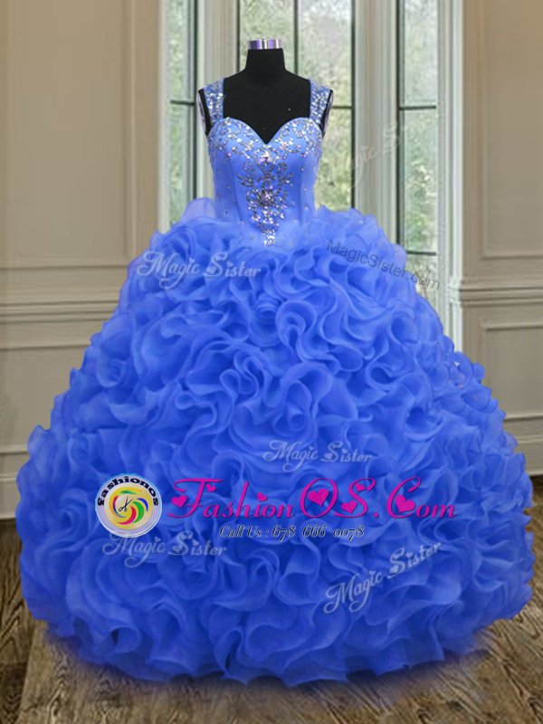 Purple Ball Gowns Sweetheart Sleeveless Organza Floor Length Lace Up Beading and Ruffles Quinceanera Gowns