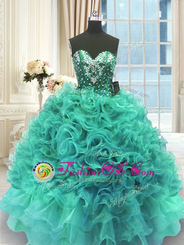 High Class Sleeveless Lace Up Floor Length Beading and Ruffles Sweet 16 Quinceanera Dress