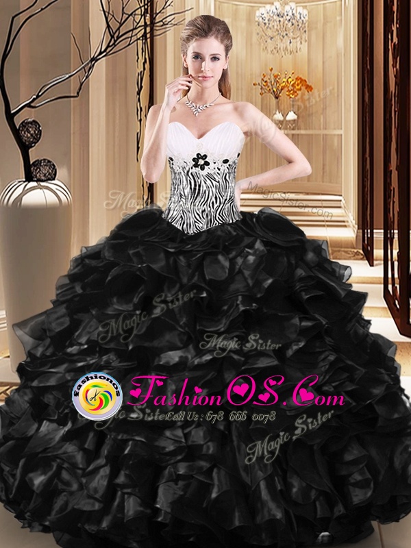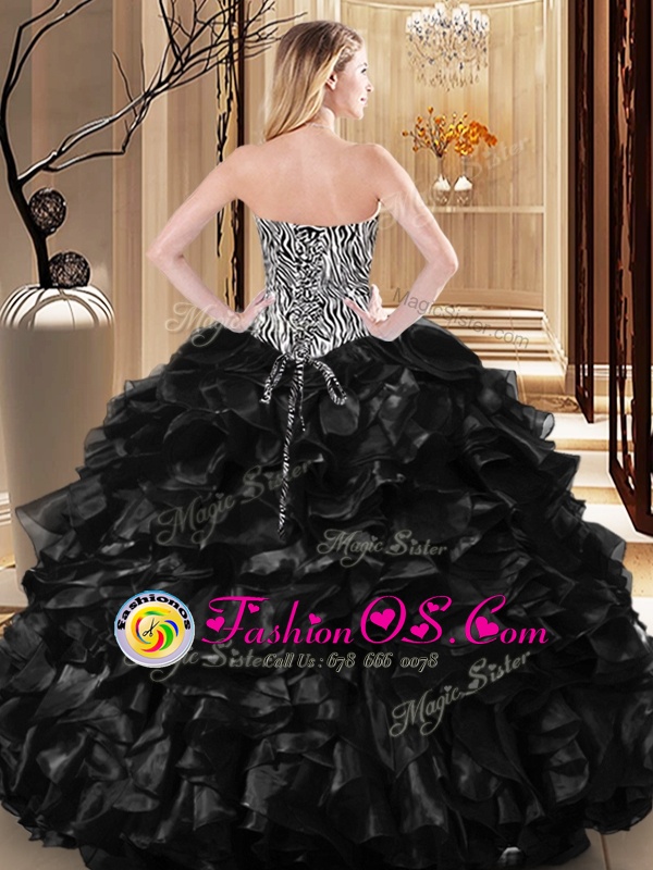 Black Sweet 16 Dress Military Ball and Sweet 16 and Quinceanera and For with Ruffles and Pattern Sweetheart Sleeveless Lace Up