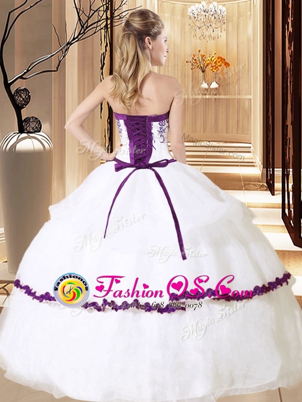 Sweetheart Sleeveless Organza Ball Gown Prom Dress Embroidery and Ruffled Layers Lace Up