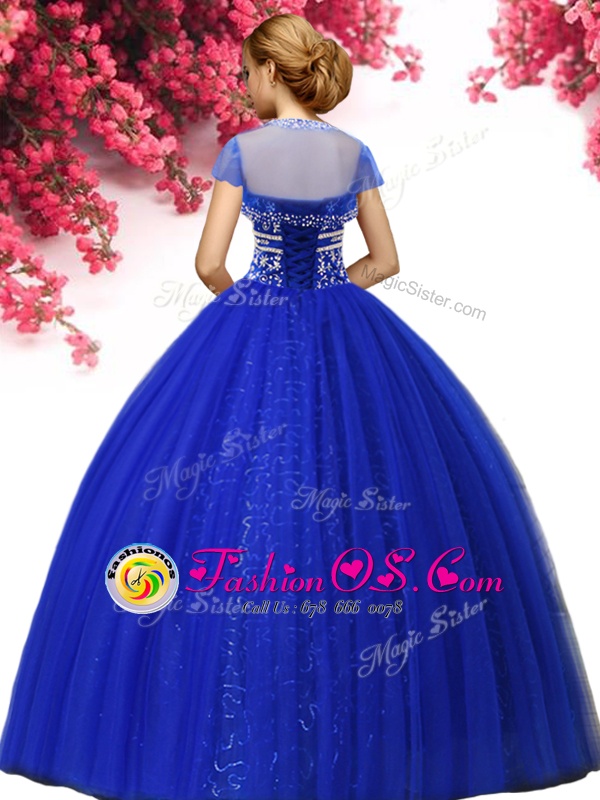 Royal Blue Sleeveless Tulle Lace Up Quinceanera Dress for Military Ball and Sweet 16 and Quinceanera