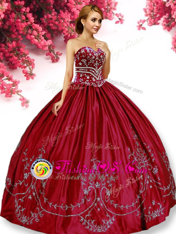 Wonderful Floor Length Wine Red Sweet 16 Dress Taffeta Sleeveless Embroidery