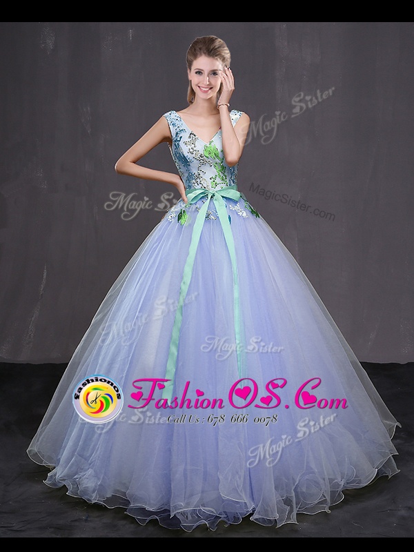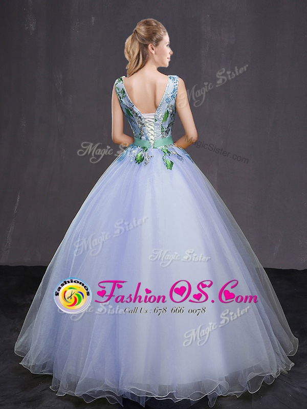 Lavender Sweet 16 Dresses Military Ball and Sweet 16 and Quinceanera and For with Appliques and Belt Sleeveless Lace Up