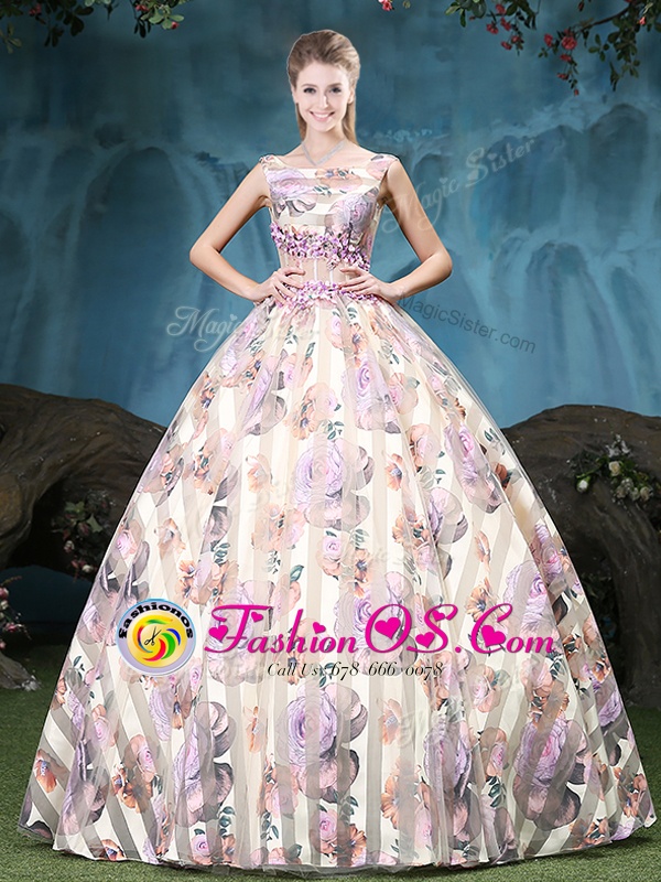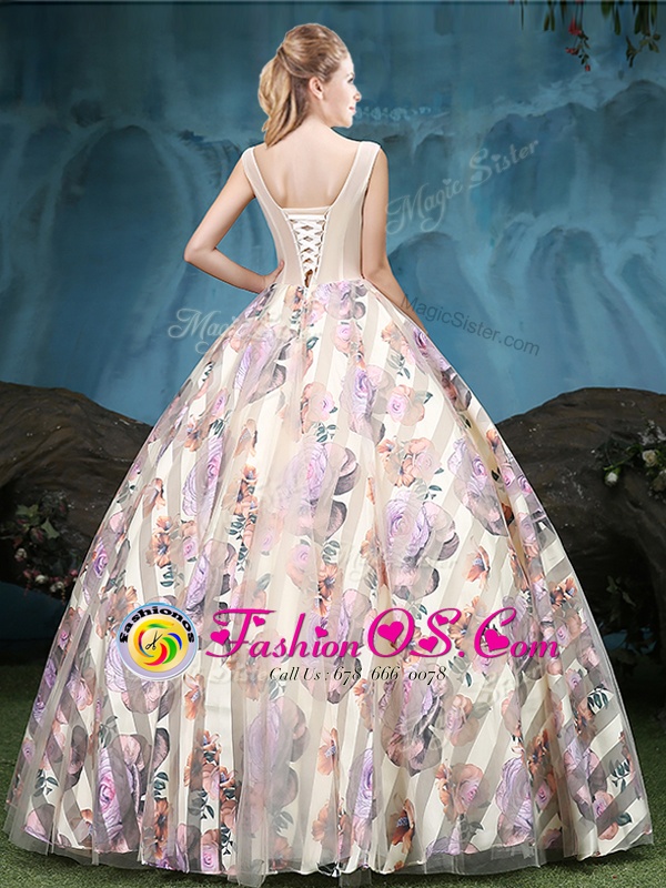 Fantastic Multi-color Tulle Lace Up Straps Sleeveless Floor Length Quince Ball Gowns Appliques and Pattern