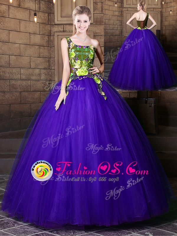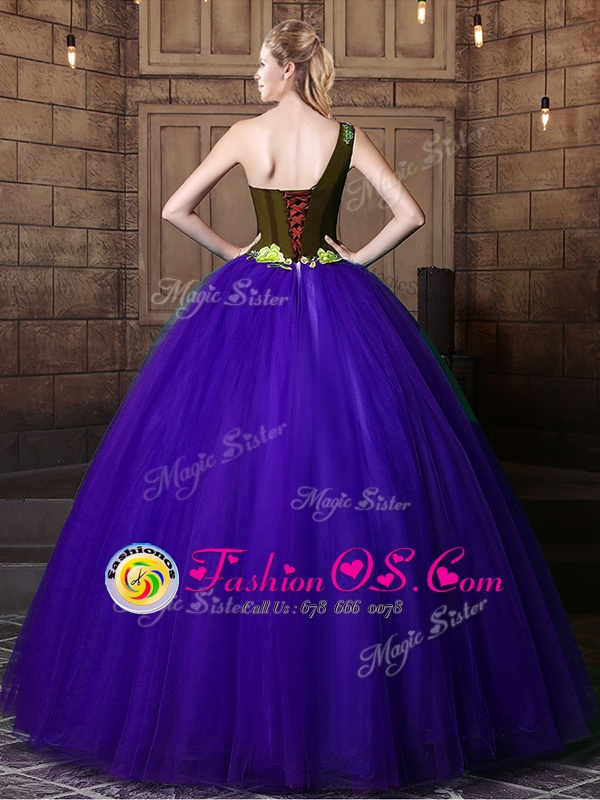 Unique One Shoulder Sleeveless Pattern Lace Up Quinceanera Dress