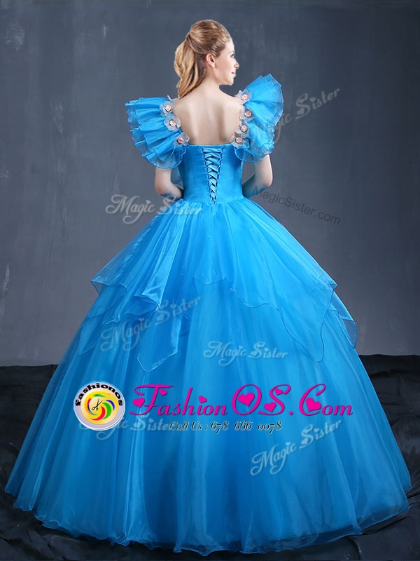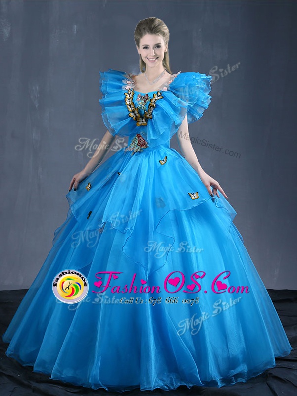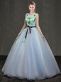 Modest Sweetheart Sleeveless Lace Up Vestidos de Quinceanera Baby Blue Organza