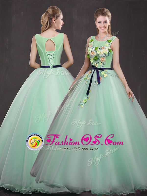 Ball Gowns Sweet 16 Dress Apple Green Scoop Organza Sleeveless Floor Length Lace Up