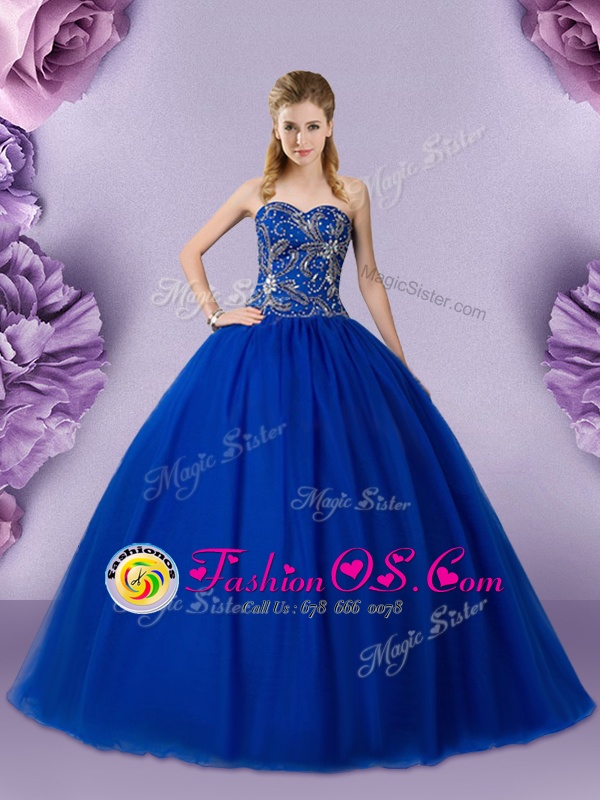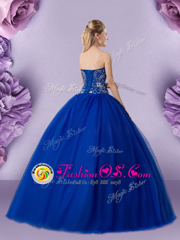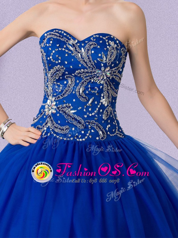 Best Royal Blue Sweetheart Lace Up Beading 15 Quinceanera Dress Sleeveless