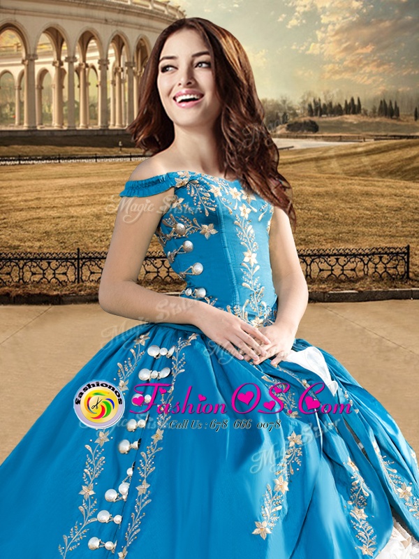 Multi-color Off The Shoulder Neckline Appliques and Embroidery and Ruffled Layers Sweet 16 Quinceanera Dress Sleeveless Lace Up