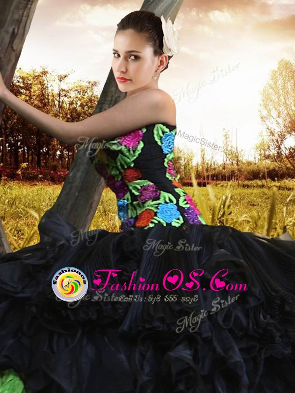 Graceful Strapless Sleeveless Lace Up Sweet 16 Dresses Black Organza and Taffeta