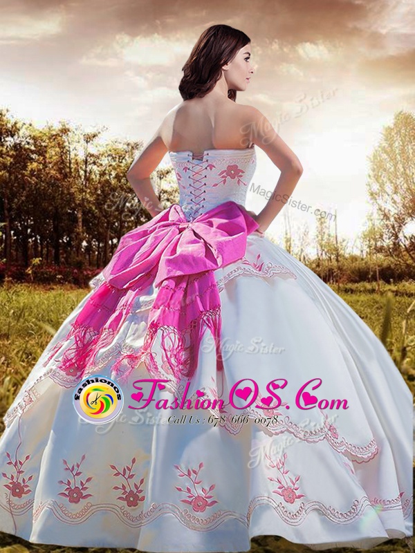 On Sale White Ball Gowns Strapless Sleeveless Taffeta Floor Length Lace Up Embroidery and Bowknot Ball Gown Prom Dress