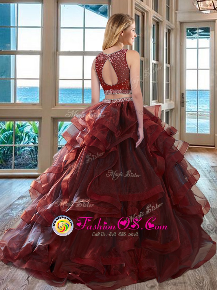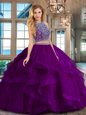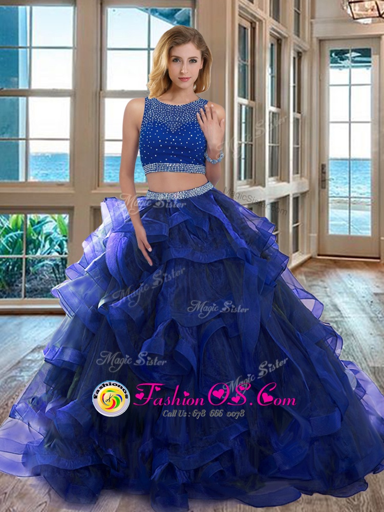 Royal Blue Organza Backless Scoop Sleeveless Floor Length Sweet 16 Dress Beading