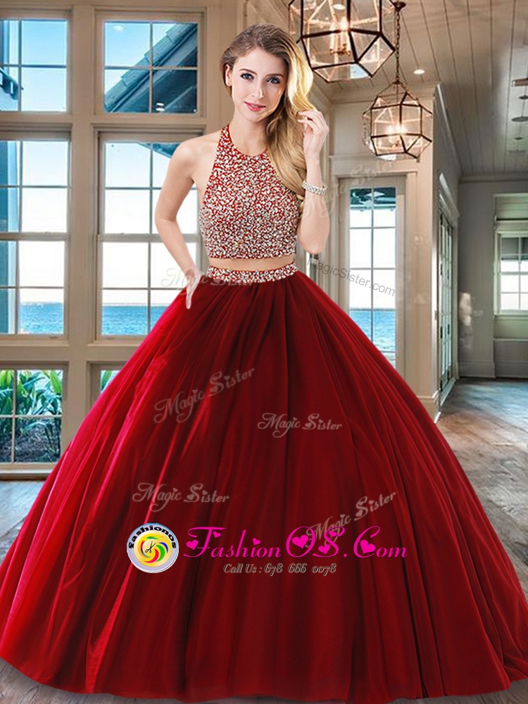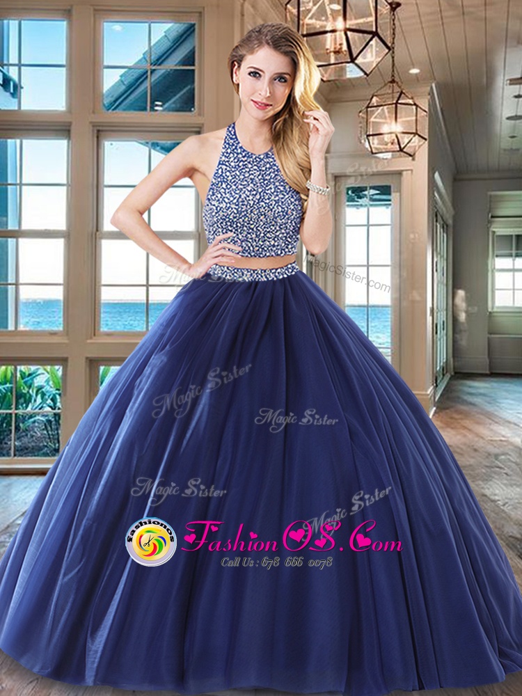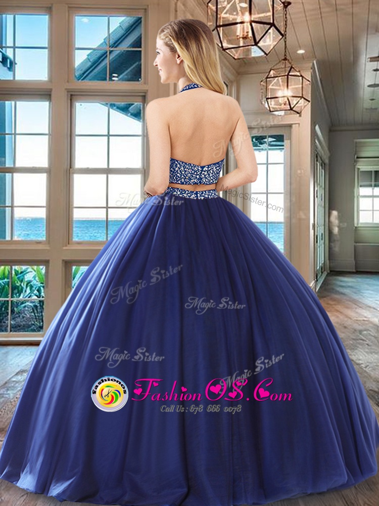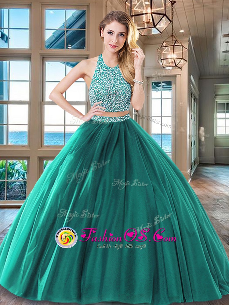 Custom Fit Halter Top Sleeveless Backless Floor Length Beading Quinceanera Gown