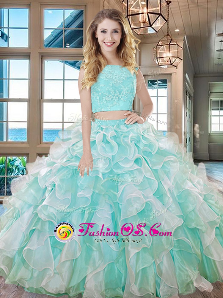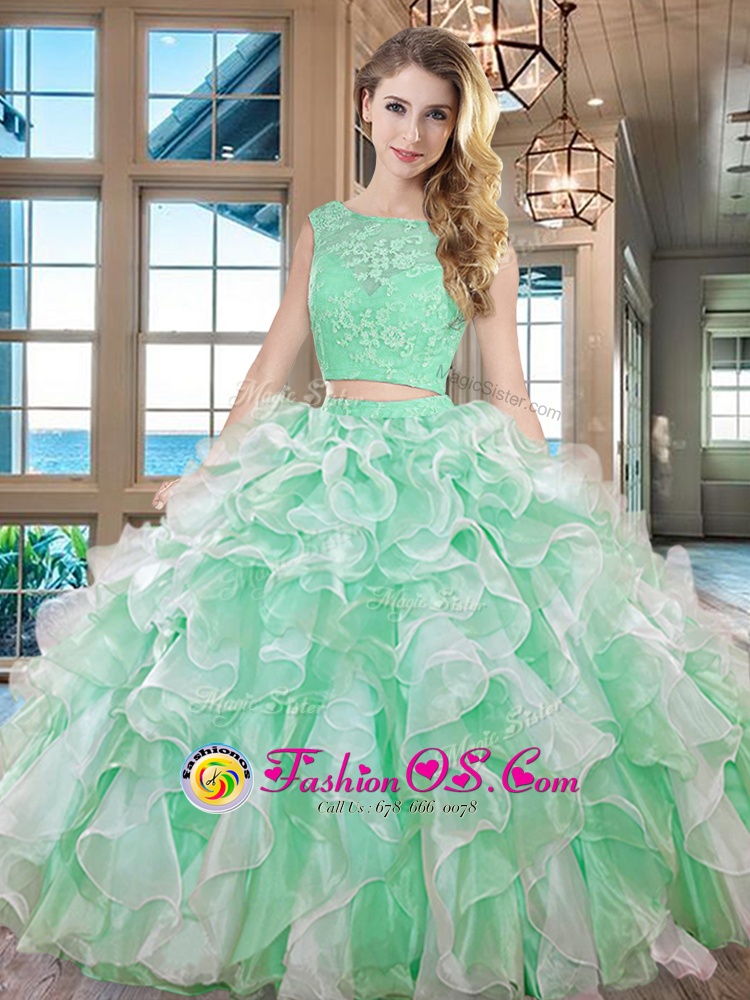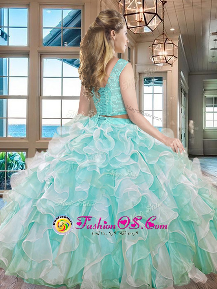 Sleeveless Lace Up Floor Length Lace and Ruffles 15th Birthday Dress