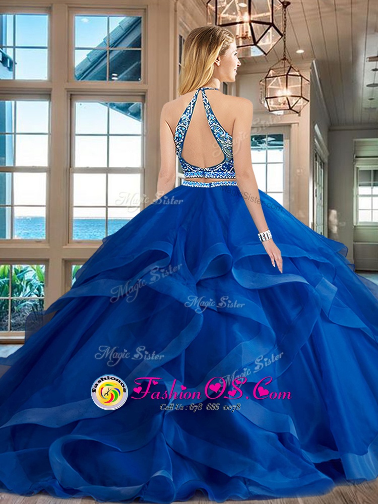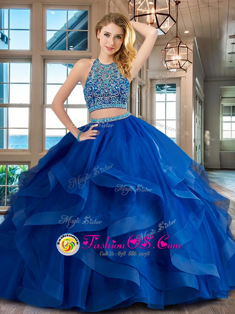 Scoop Sleeveless Backless Floor Length Beading and Ruffles Ball Gown Prom Dress