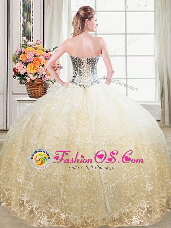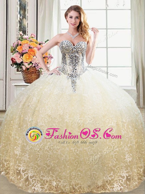 Tulle and Lace Sweetheart Sleeveless Lace Up Beading and Lace Quinceanera Gowns in Champagne