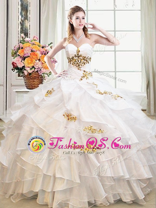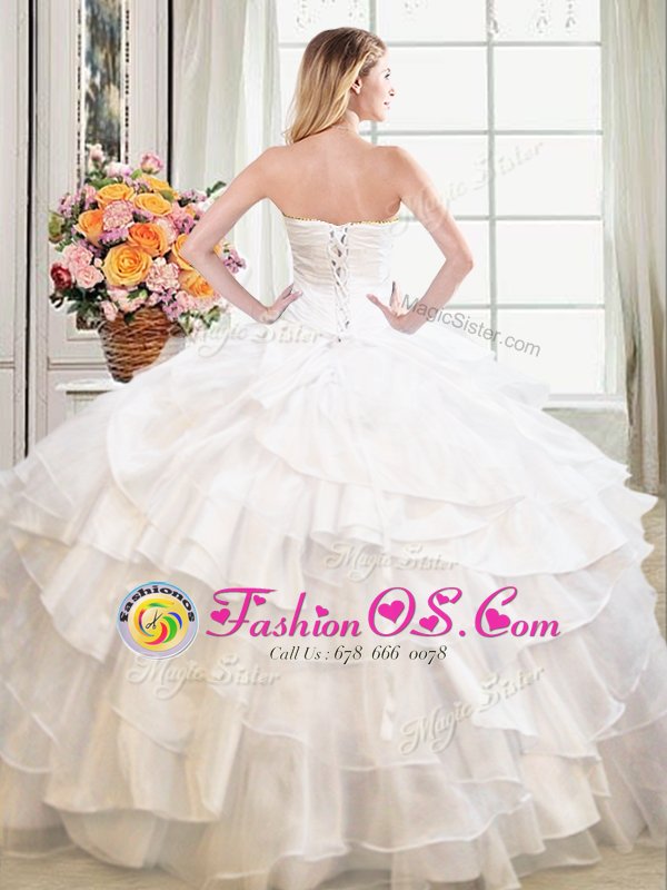 Clearance White Ball Gowns Beading and Ruffles Quinceanera Gown Lace Up Organza Sleeveless Floor Length