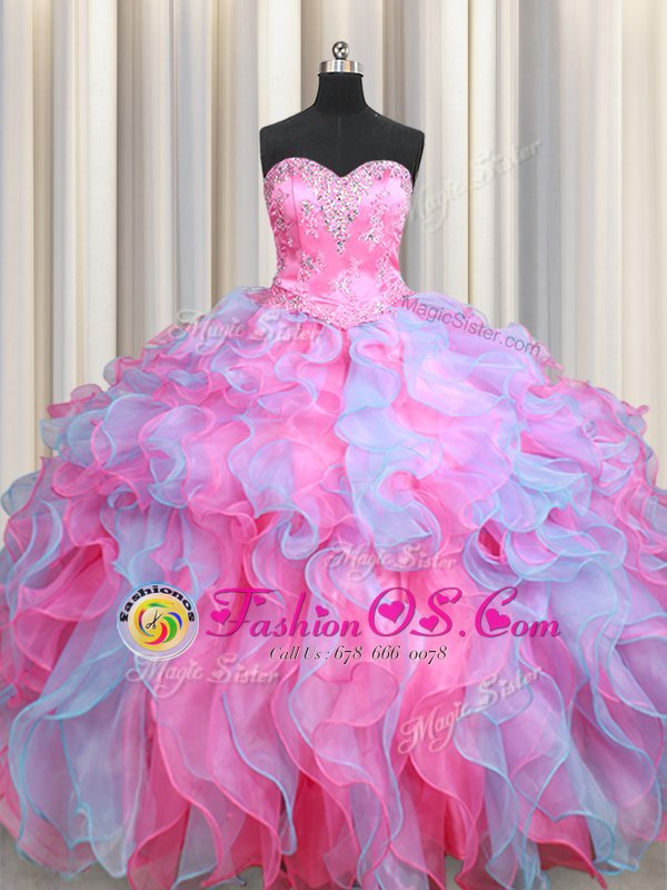 Multi-color 15 Quinceanera Dress Military Ball and Sweet 16 and Quinceanera and For with Beading and Ruffles Sweetheart Sleeveless Lace Up