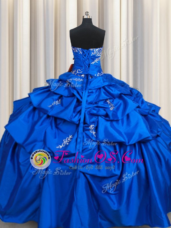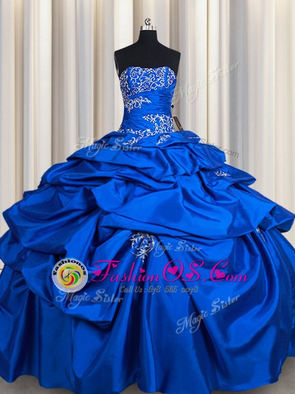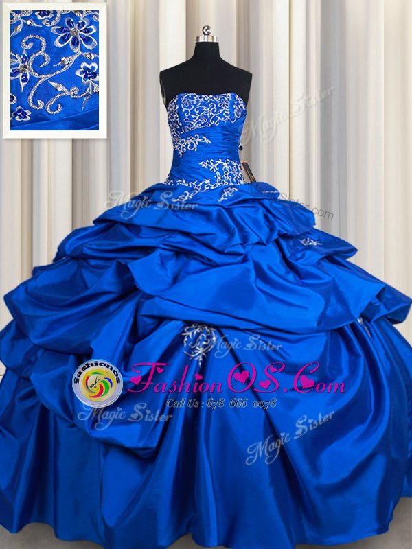 Clearance Royal Blue Ball Gowns Taffeta Strapless Sleeveless Beading and Pick Ups Floor Length Lace Up Quince Ball Gowns