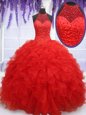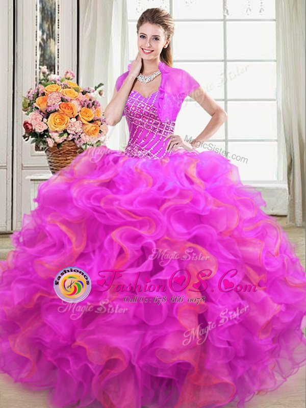 Elegant Multi-color Ball Gowns Beading and Ruffles Quinceanera Gown Lace Up Organza Sleeveless Floor Length
