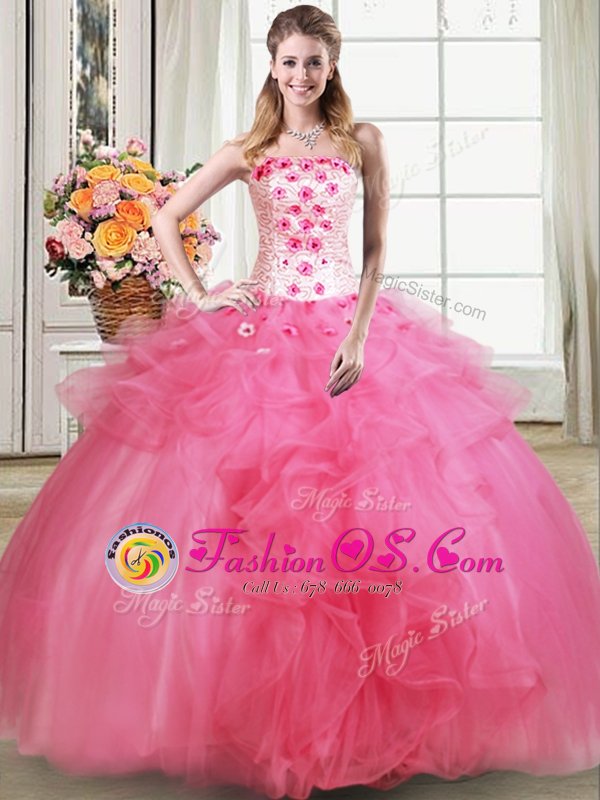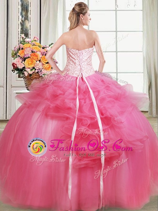 Affordable Strapless Sleeveless Tulle Quinceanera Dresses Beading and Appliques and Ruffles Lace Up