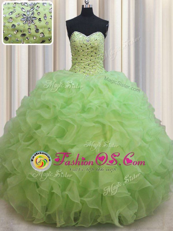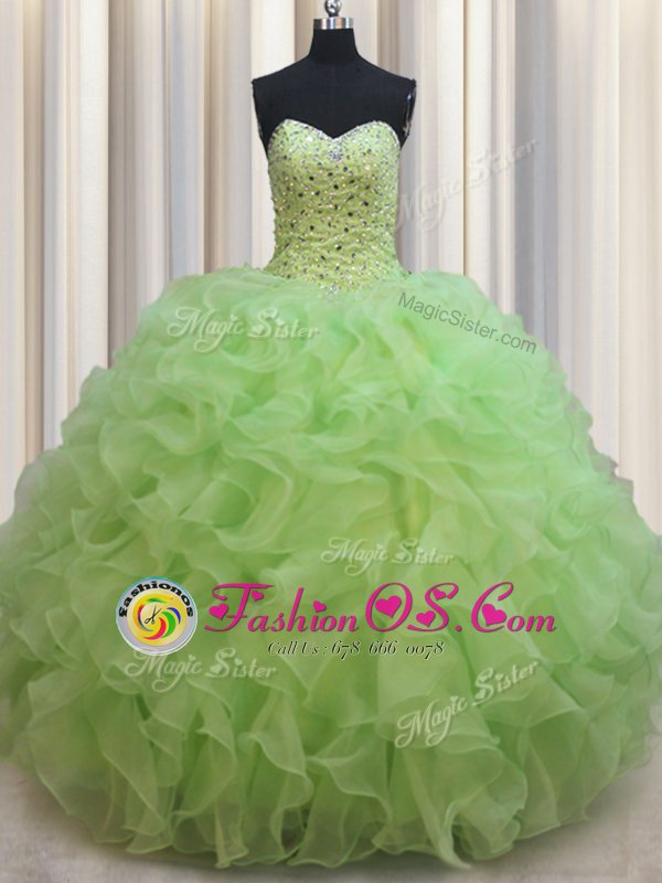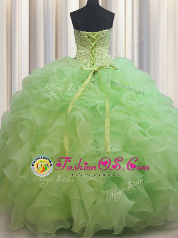 Floor Length Yellow Green Vestidos de Quinceanera Sweetheart Sleeveless Lace Up