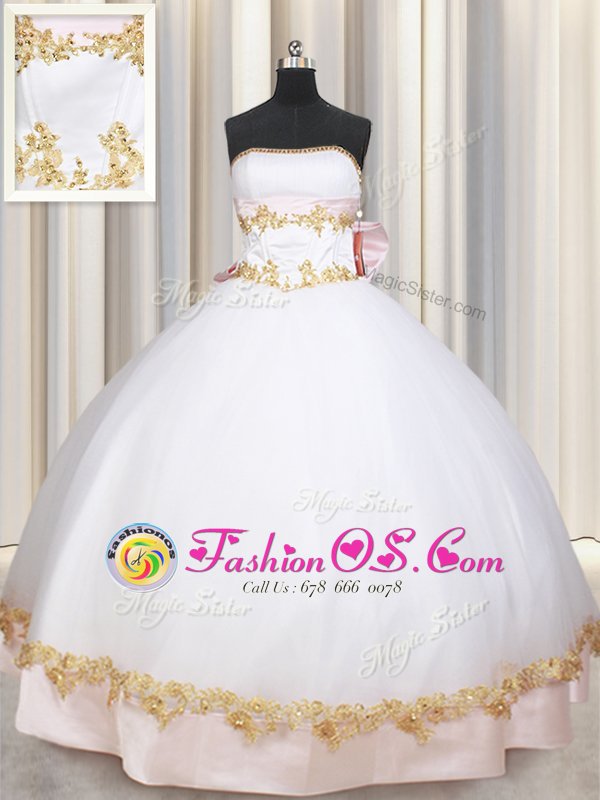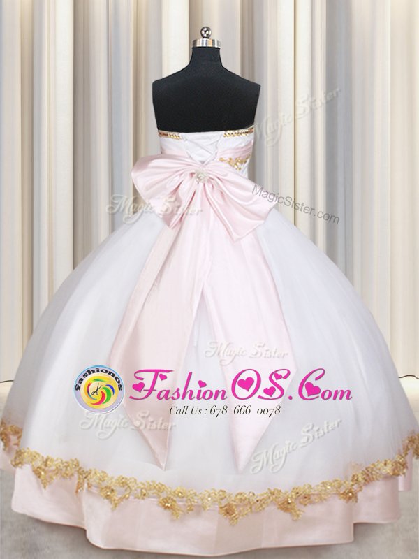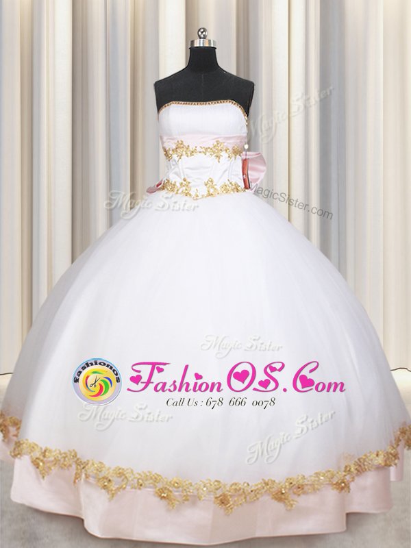 Floor Length White Sweet 16 Dress Strapless Sleeveless Lace Up