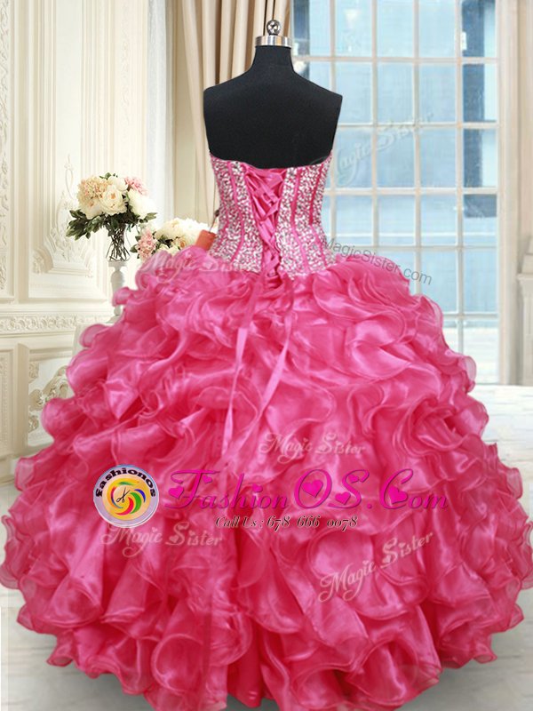 Red Sleeveless Embroidery and Ruffled Layers and Sequins and Pick Ups Floor Length Sweet 16 Quinceanera Dress