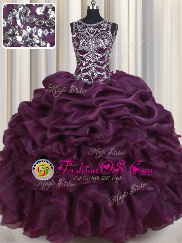 Scoop Sleeveless Organza Vestidos de Quinceanera Beading and Ruffles and Pick Ups Lace Up