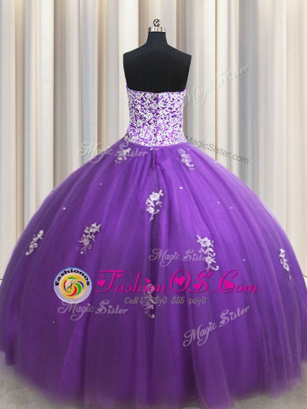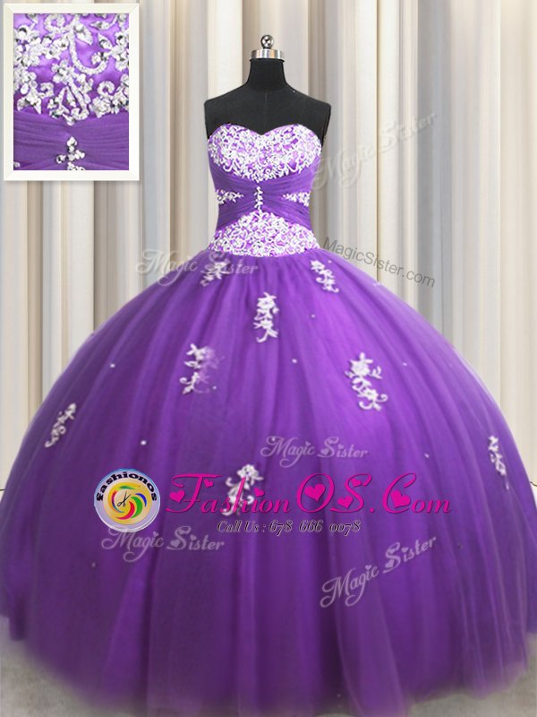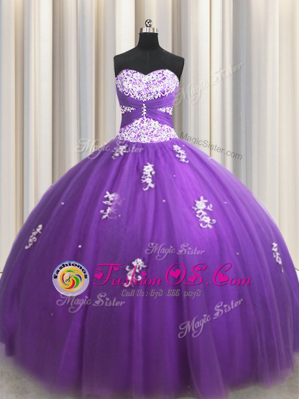 Tulle Sweetheart Sleeveless Zipper Beading and Appliques 15 Quinceanera Dress in Eggplant Purple