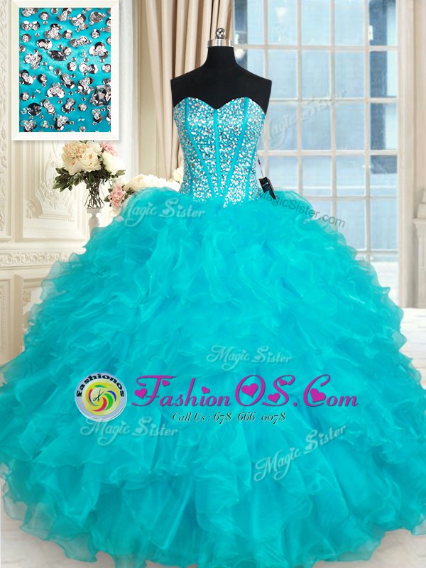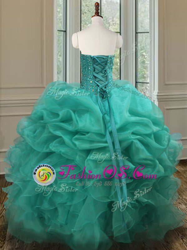 Lovely Champagne Organza Lace Up Scoop Sleeveless Floor Length Quinceanera Dresses Beading and Ruffles