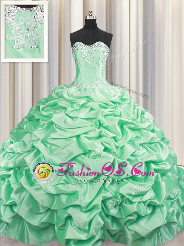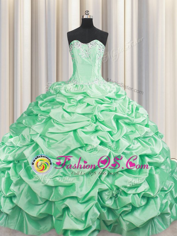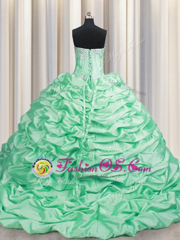 Pick Ups Brush Train Ball Gowns Quinceanera Dress Apple Green Sweetheart Taffeta Sleeveless With Train Lace Up