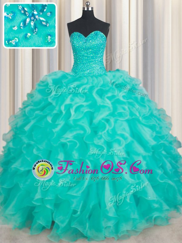 Romantic Floor Length Ball Gowns Sleeveless Turquoise 15th Birthday Dress Lace Up