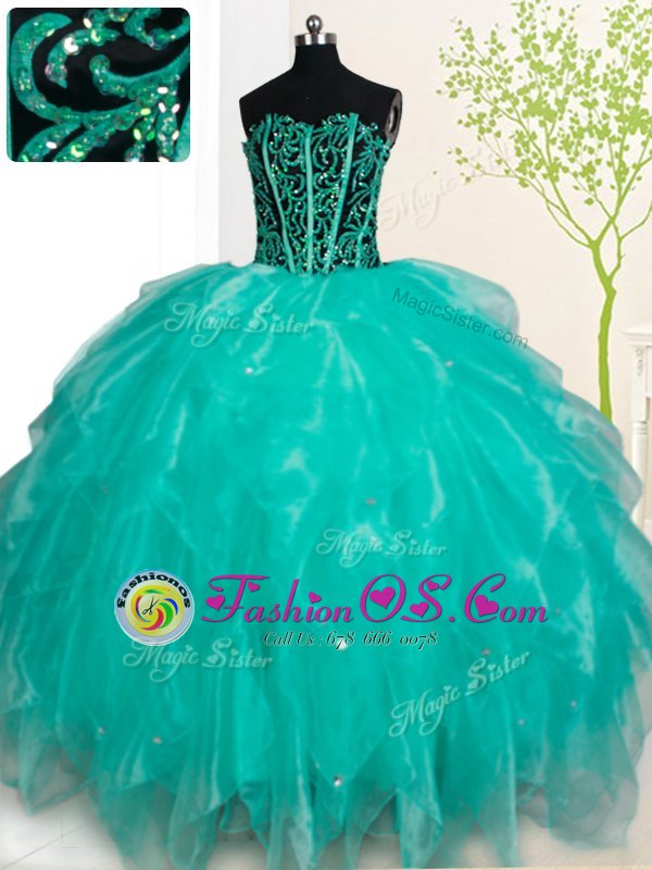 Admirable Floor Length Ball Gowns Sleeveless Turquoise Quince Ball Gowns Lace Up