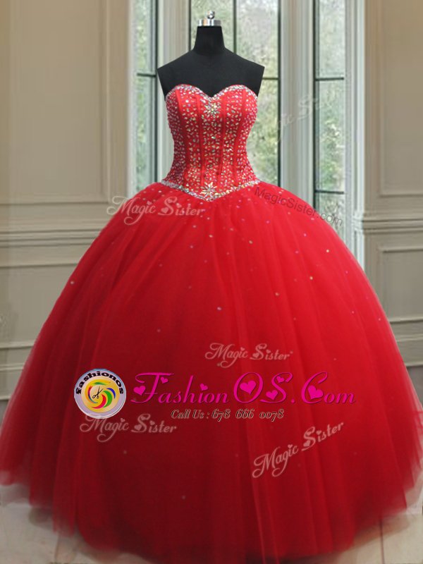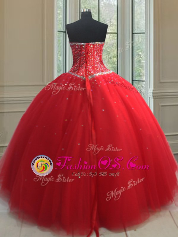 Baby Pink Tulle Lace Up Sweet 16 Quinceanera Dress Sleeveless Floor Length Beading and Appliques