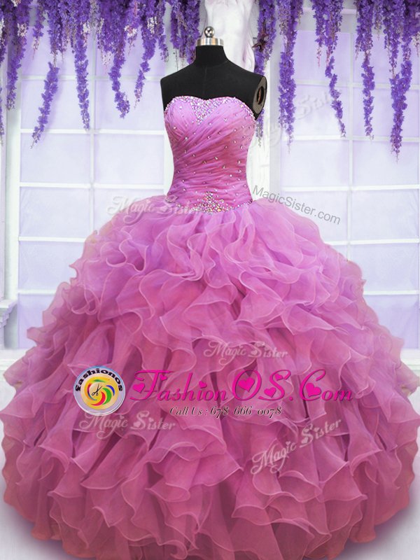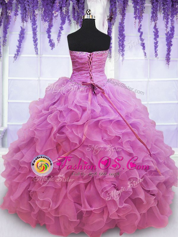 Cute White and Red Sleeveless Floor Length Beading and Ruffles Lace Up Sweet 16 Dresses