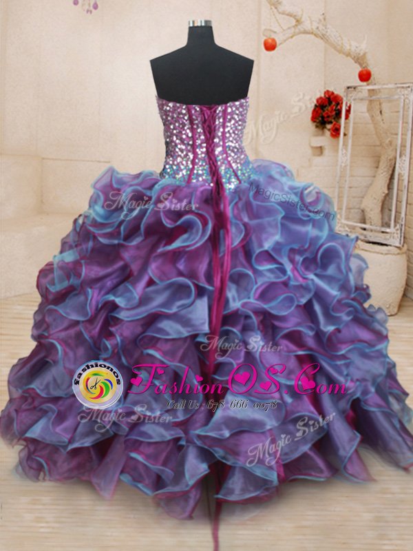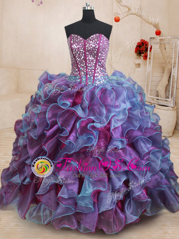 Top Selling Floor Length Multi-color 15th Birthday Dress Organza Sleeveless Ruffles and Sequins