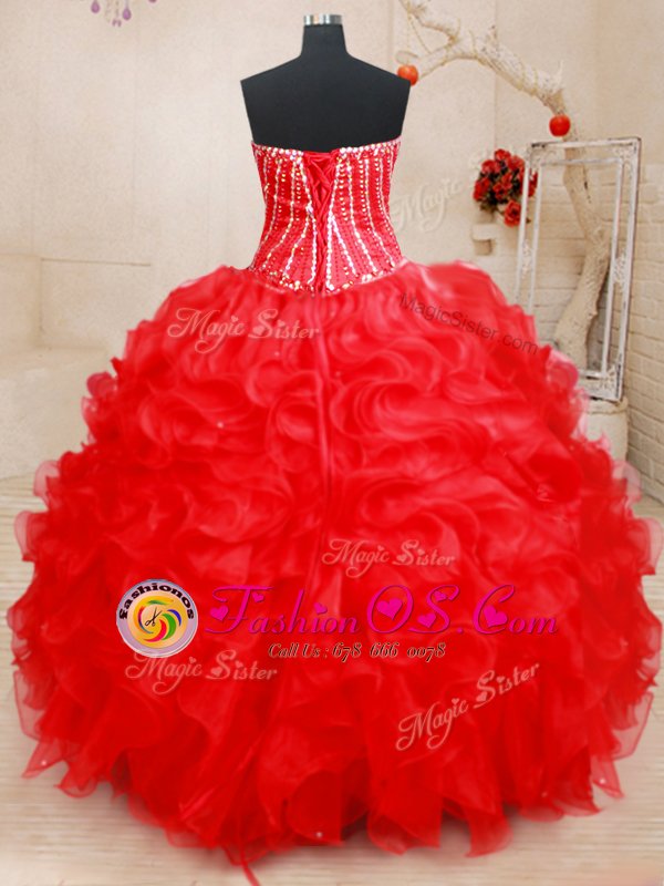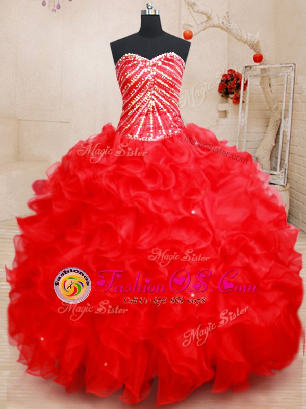 Cute Sweetheart Sleeveless Organza Sweet 16 Quinceanera Dress Beading and Ruffles Lace Up