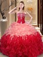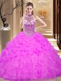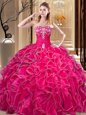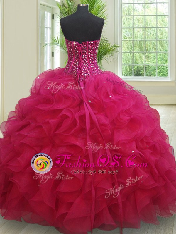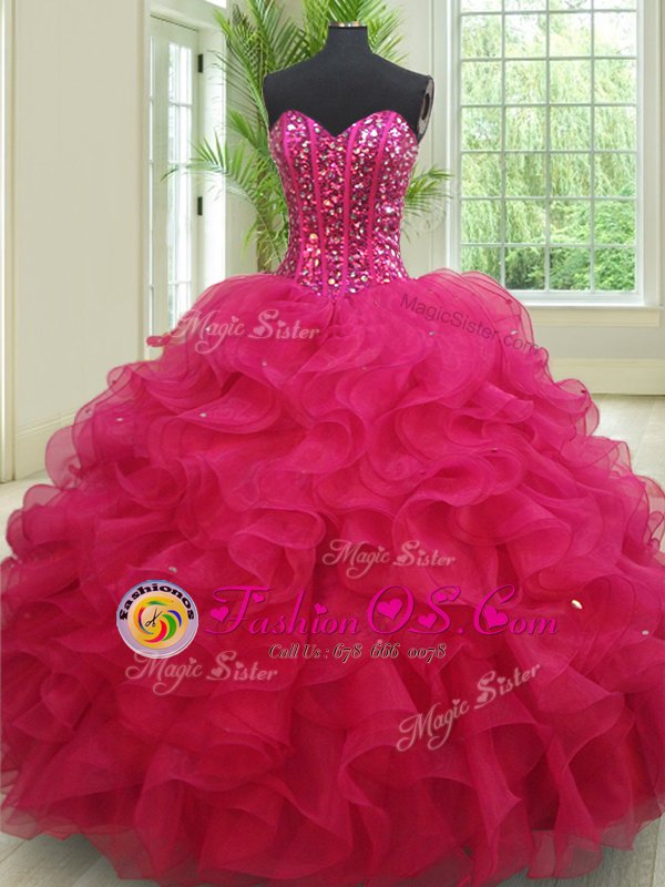 Decent Fuchsia Sweetheart Neckline Beading and Ruffles Quinceanera Dresses Sleeveless Lace Up