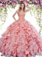 Straps Turquoise Lace Up Sweet 16 Dresses Beading and Ruffles and Pick Ups Sleeveless Floor Length